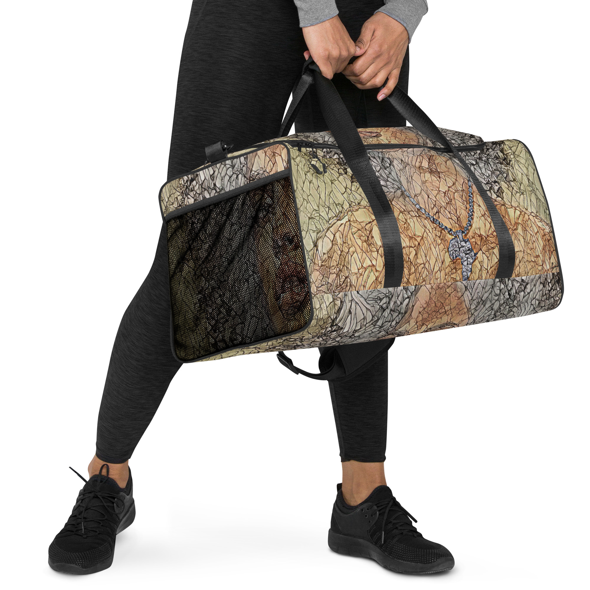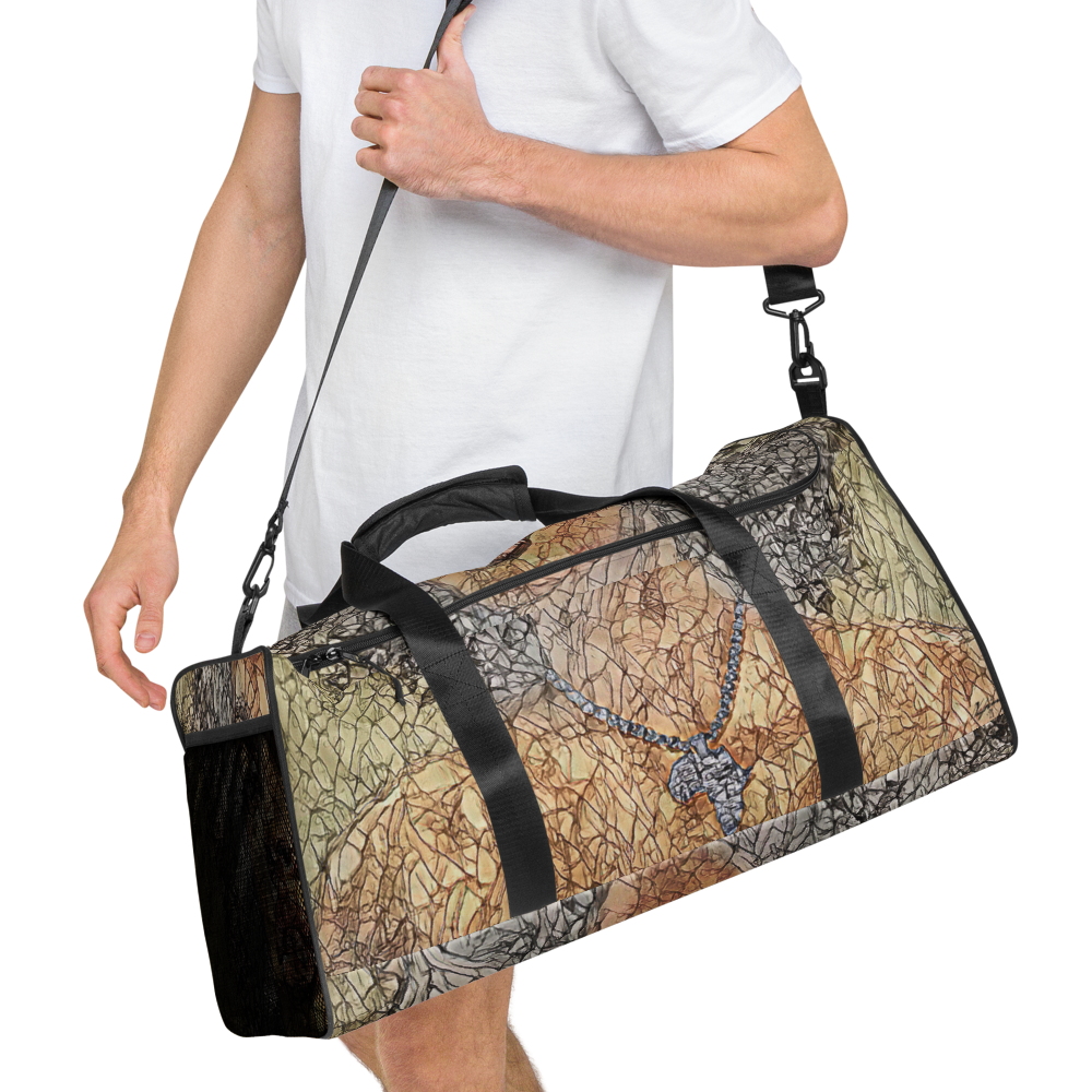 The Urafat Desirable African Queen duffle bag designed by Artist Nafrima is the perfect companion for every occasion—take it with you when traveling, running daily errands, or going to the gym. The bag is spacious and will keep all your stuff neat and organised with its multiple pockets, including one with a zipper for your most valuable possessions. Adjust the padded shoulder strap when the bag’s helping you carry heavier things, and continue your daily run without a worry!